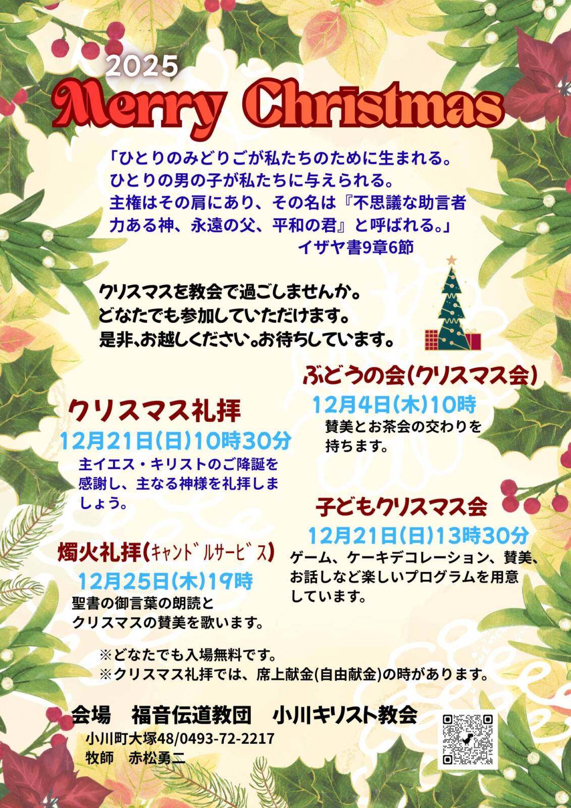 クリスマスを教会で過ごしませんか。どなたでも参加していただけます。皆様のお越しをお待ちしています。